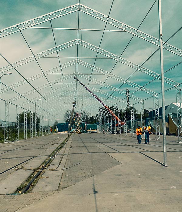 Namioty w halach pokryte są plandeką PCV, blachą trapezową lub płytą warstwową. Oferowane przez nas hale namiotowe są zgodne z normami budowlanymi, wykonane według szczegółowo opracowanej dokumentacji technicznej. System konstrukcyjny hal pozwala na szybki montaż i demontaż namiotu. Postawiliśmy na rzetelność oraz wysoką jakość oferowanych produktów.
