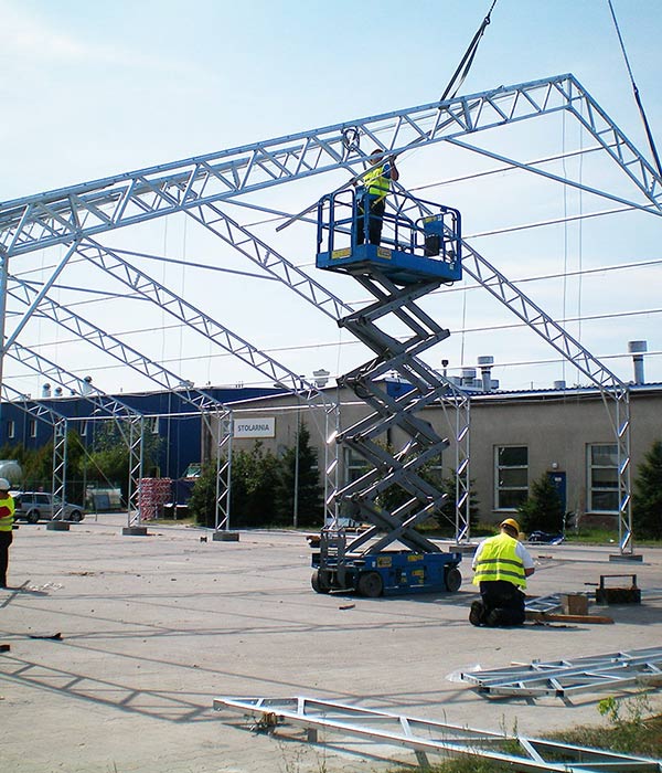 Warto zwrócić uwagę na to w jakiej technologii następuje stawianie hal namiotowych i upewnić się, że korzystamy z nowoczesnych i sprawdzonych rozwiązań. Budowa hali namiotowej przez naszą firmę opiera się na wytworzeniu lekkiej, a przy tym bardzo trwałej konstrukcji i wykorzystaniu sprawdzonych, a przy tym nowoczesnych materiałów. Wykorzystujemy lekką konstrukcję szkieletową (aluminiową lub stalową), zaś na górze umieszczamy plandekę lub zbliżony materiał. Tak postawiona hala może być łatwo montowana, demontowana i transportowana, jeśli zajdzie taka potrzeba.